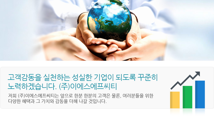 (주)이에스에프씨티는 세계 초 일류 기업으로 성장 할것을 약속 드리며, 여러분의 관심과 격려를 진심으로 당부드립니다.